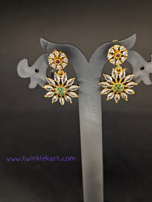 Dazzling Two Layer Flower Necklace With Earrings