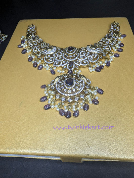 Premium Victorian Purple Bridal Necklace With Earrings