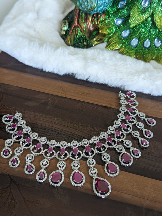 Premium Teardrop Twilight AD Ruby Necklace Set