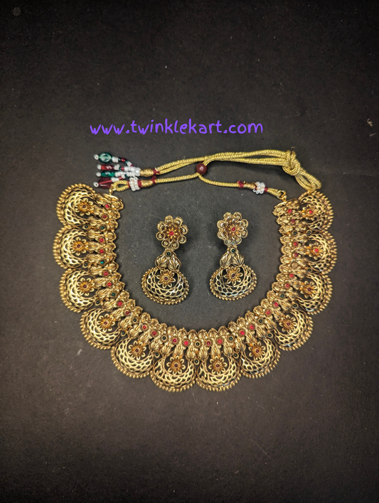 Premium Vintage Style Floral Kemp Necklace & Earrings