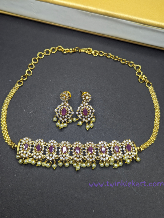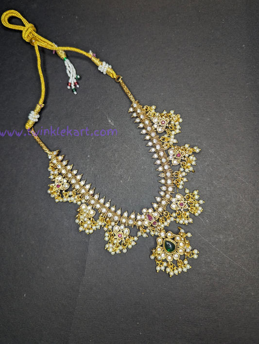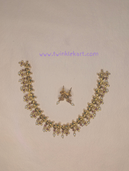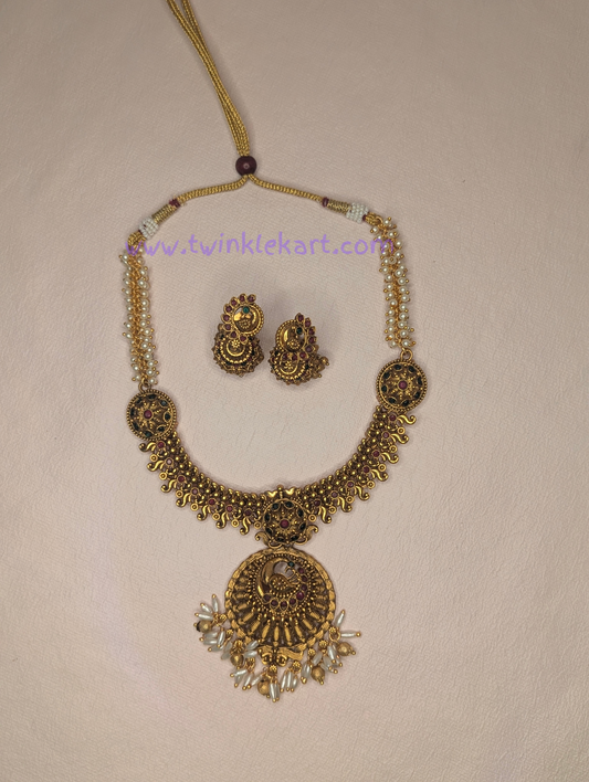 Premium Traditional Peacock Pendant Pearl Necklace Set