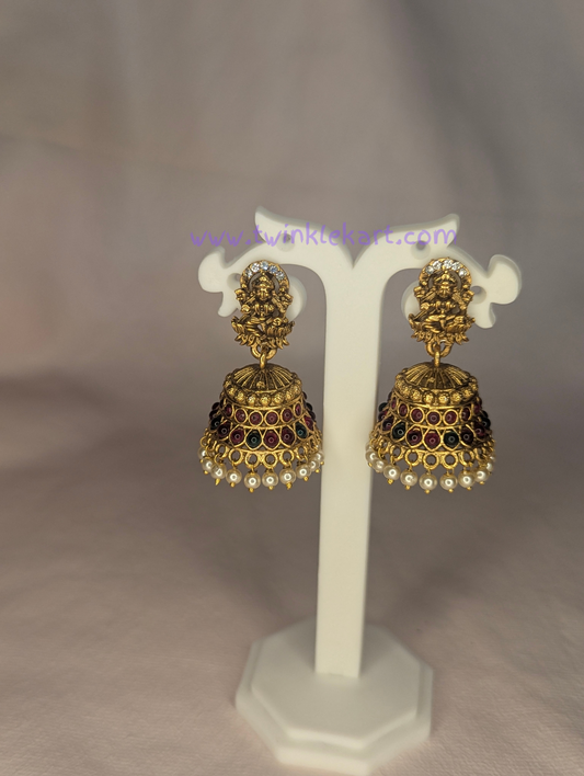 Premium Lakshmi With Peacock Style With Vibrant Stone Earrings