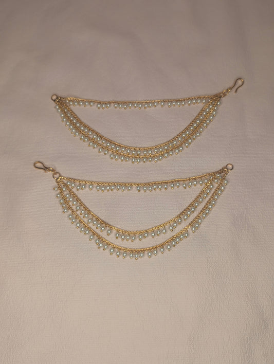 Matte Guttapusalu Green Stone Long Haram With Earrings