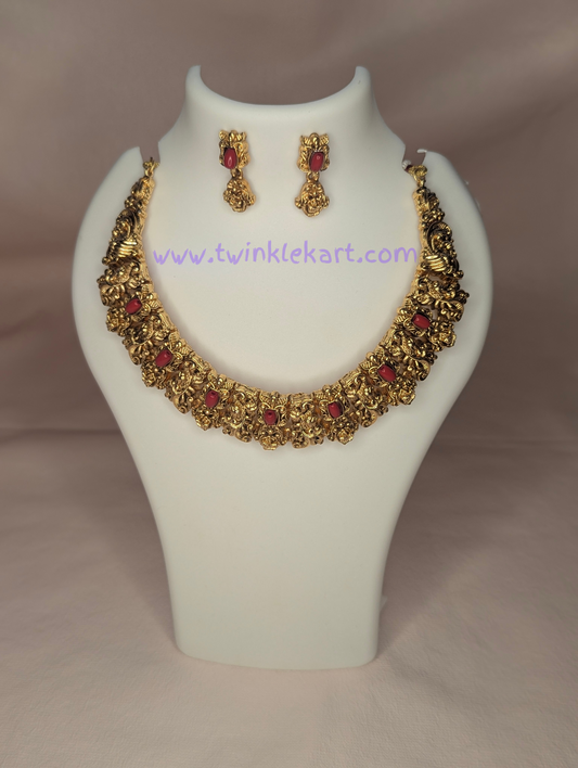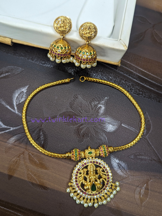 Premium Lakshmi Mugappu Necklace With Beautiful Earrings