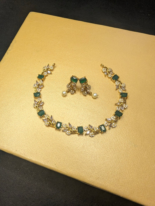 Premium Dainty Crystal Leaf Necklace With Earrings